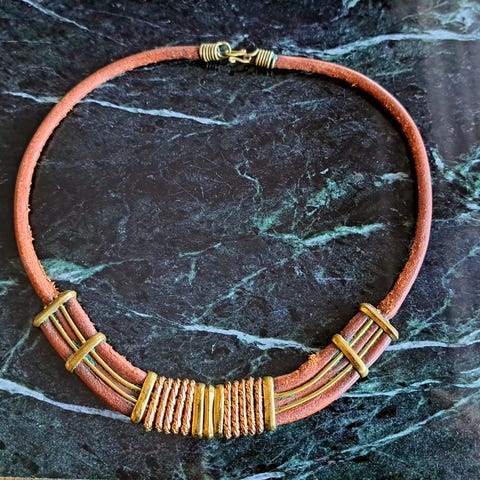 80-luvun lopusta tai 90-luvun alusta oleva choker-mallinen kaulakoru, Native American bone choker -inspiroitunut. Ostettu Kaisaniemen Pukevasta joskus pienenä.