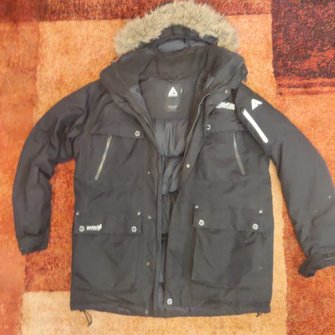 Myynnissä laadukas Daniel Hechterin miesten untuvatakki, koko L. Kyseessä on paksu ja lämmin talvitakki, jolla pärjää hyvin myös Lapin pakkasissa.