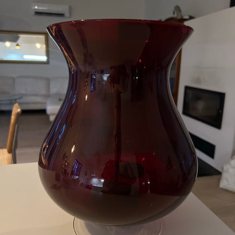 Jos oikein muistan, niin kyseessä on käsityönä puhallettu lasi. Kuplat lasissa ovat upeita.