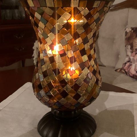 Partyliten iso hurrikaani kynttilälle tai kukille. Korkeus 27, halkaisija 24.