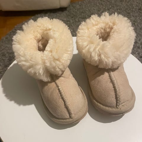 UGG lasten tossut, koko 24. Väri harmaa. Tossut ovat unisex-mallia ja sisältävät pehmeän karvavuoren. Pohja on kuvioitu liukastumisen estämiseksi.