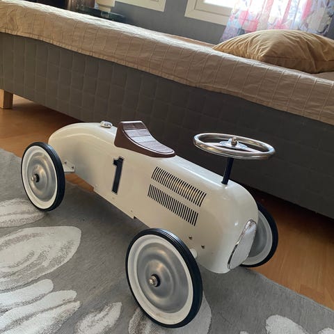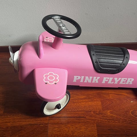 Myydään hyväkuntoinen metallirunkoinen lasten potkulentokone.