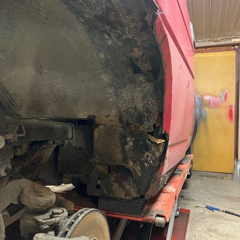 Auton hitsaus,osittainen maalaus hiekkapuhallus ym.huoltotyö.