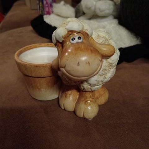 Pieni valkoinen lammas, jonka korkeus n. 8 cm ja pituus n.6 cm. Ehjä ja virheetön. Ei leimoja. Maksu käteisellä tai Mobilepaylla.
