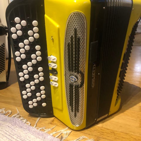 70-luvulla Saksasta ostettu monika harmonikka. Toimii hyvin. Mukaan myös laukku ja olkahihnat. Ollut käyttämättä jonkun aikaa.