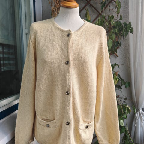 Kokomerkintä 46, hyvä noin l-xl koon naiselle. Voi pitää myös unisex-mallina. Kainalo-kainalo 50 cm venyttämättä. Pitkät hihat, joustava materiaali. Metalliset napit edessä.