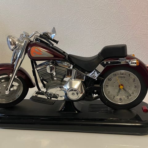 Metallinen moottoripyörä pöytäkello, hopeanvärinen.
