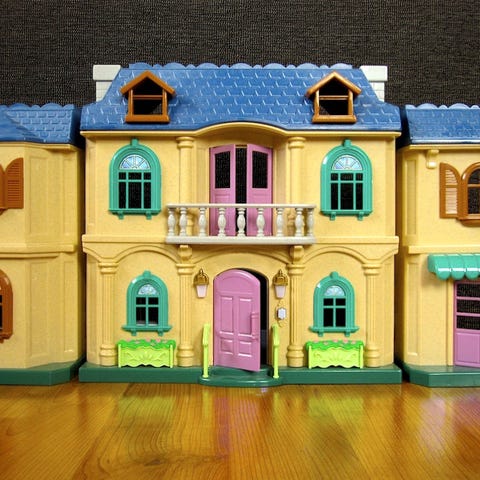 90-luvulla Porvoosta Riimikosta ostettu nukkekoti ja samasta paikasta lapsuuteni aikana hankittu irtaimisto. Lisäksi vanhasta lipastosta tehty alaosa. Ulkomaalaus 30 vuoden takaa, sisällä pintaremonttia tehty pari vuotta sitten ja jäänyt vähän keskenkin. Ollut leikkikäytössä sekä itselläni että lapsillani, joten käytönjälkeä löytyy. Asukkaatkin ovat ottaneet vähän osumaa.