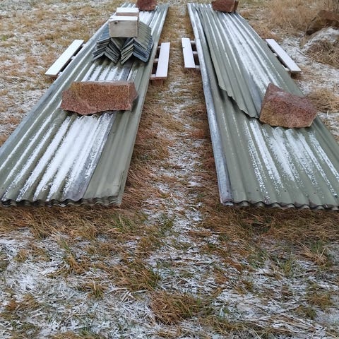 Noin 500-600 neliötä. Pituus noin 5-6 metriä. Leveys noin 105 cm. Profiilin korkeus 40 milliä. Pellin vahvuus mauserilla mitattuna 0,70mm. Varattu.