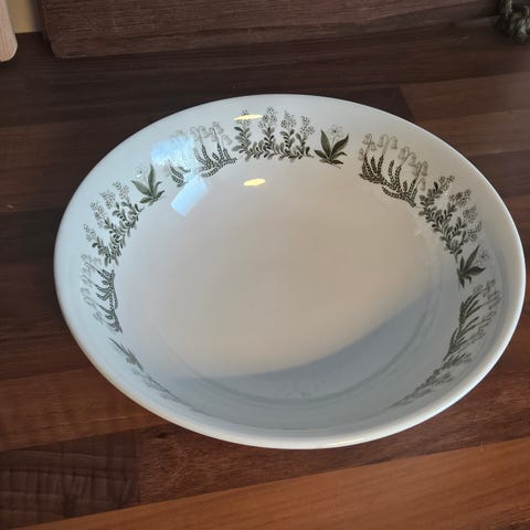 Ison tarjoilulautasen alapuolella pieni lohkeama, ei näy päällipuolelle.