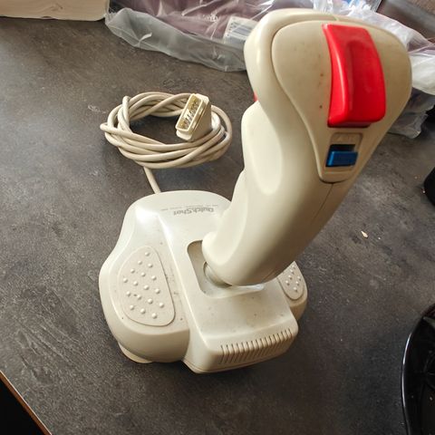 Kaksi vanhaa joystickiä. Molemmat toimivina pakattu varastoon.