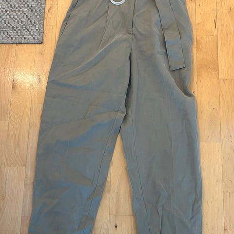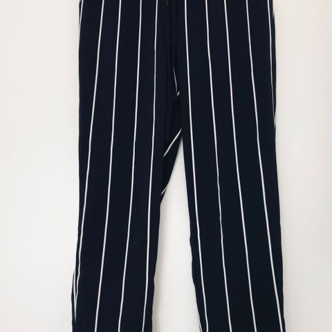 Zara siniset housut, koko XS. Housuissa on valkoiset pystysuorat raidat ja joustava vyötärö. Mukavat ja rennot päällä 🤍