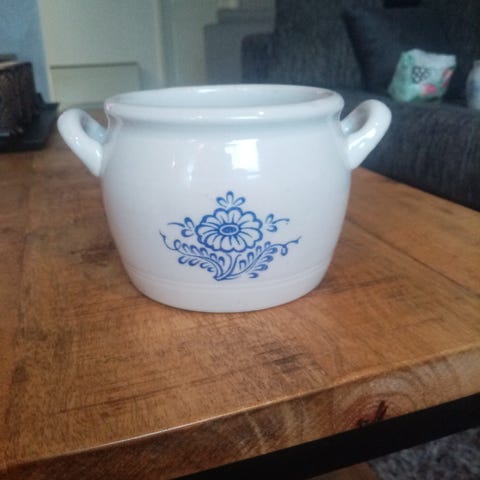 Kaunis voipytty on niin hyväsä kunnossa että tuskin on koskaan ollut käytössä. Korkeus 12,5 cm ja suuaukon halkaisija 15,5 cm
