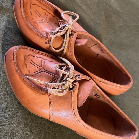Töysän kenkätehtaan valmistamat nahkaiset supikkaat koko 38. Todella hyväkuntoiset, vain nauhat on ehkä hyvä vaihtaa uusiin.