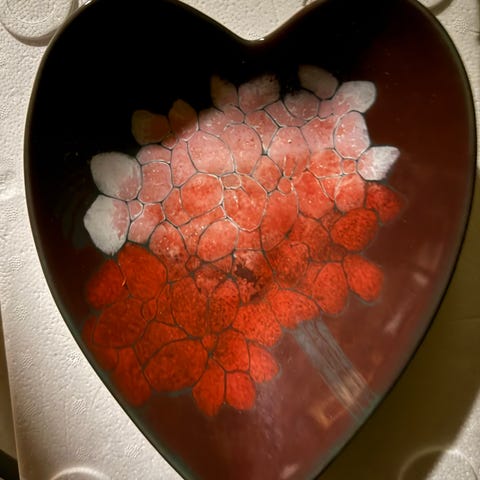 Pentikin nostalgia kauniin sininen sydänkulho., vaikka pikkuesineille tai kynttälillä sopiva. Kunto hyvä, vähän kulumaa pohjalla