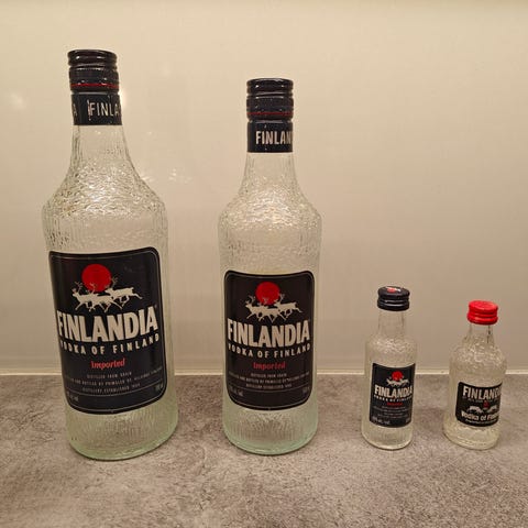 Pohjassa teksti liquor bottle finland 1.75 93 k2 ja toisen vain 1.75 180 k 9 96