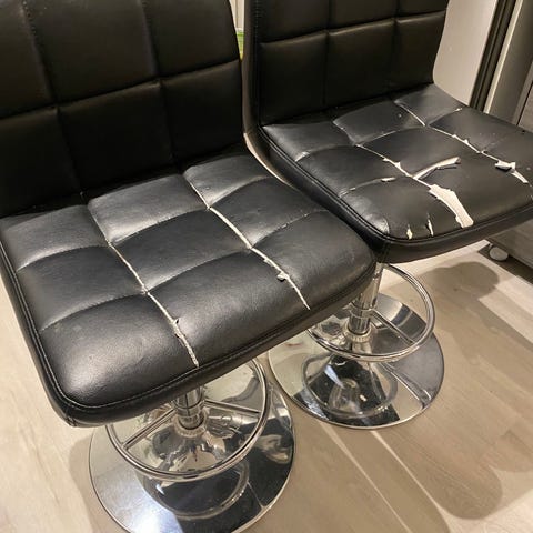 Lähdesmäen huonekaluliikkeestä vasta ostettu jakkara. Ei sopinutkaan sisustukseen.
