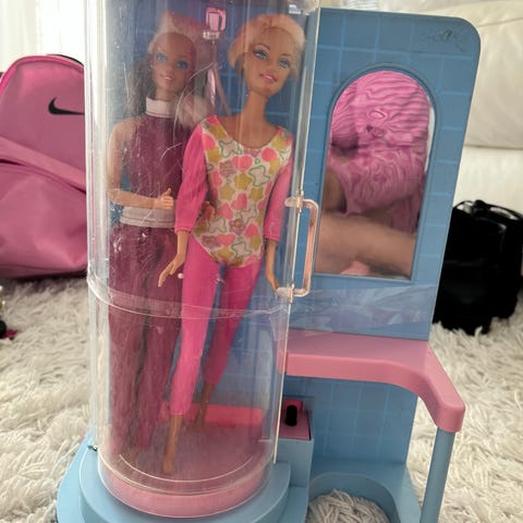 Kampaamo nukke tai barbien suihke kaappi ja 2 Barbie
