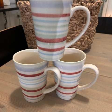 Tarjolla käytössä olleet ja vähän kolhiintuneet Riika mukit Latviasta