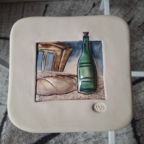 Uusi lahjapakkauksessa oleva käsin maalattu seinälautanen. Halkaisija 20cm.