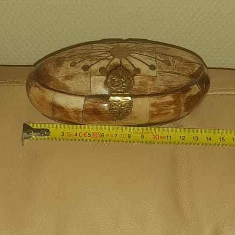 Hieno vanha korurasia. Pinnalla on tekstiä kylläkin. Rasia on alpakkaa.