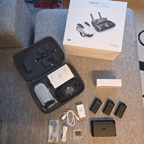 DJI Mavic Pro-pläjäys, jossa 2 kopteria, ohjaimia, muistikortteja ja latureita. Useita laukkuja, potkureita ja seitsemän akkua jne. Eli, kaikki mitä kuvissa näkyy. Laitteet toimivia, vähän käytettyjä ja myös akut pitävät latauksen.