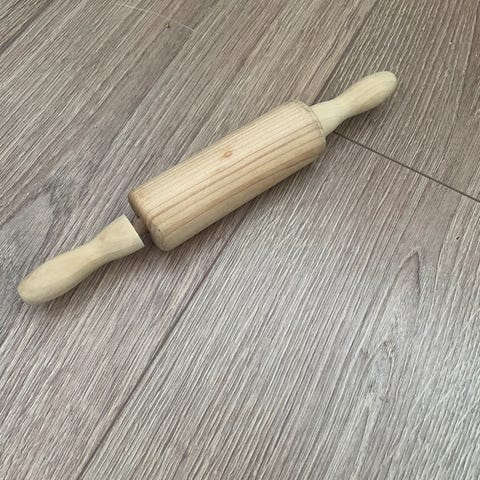 Erittäin hyväkuntoiset muoviset muotit ja kaulin. Kaulimen koko 24 x 4,5 cm. Muottien koko 5 -10 cm.
