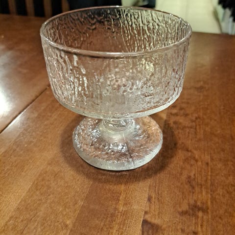 Iittala lasinen kulho, kirkas väri ja koristeellinen kuviointi. Kulho on valmistettu lasista ja soveltuu esimerkiksi tarjoiluun tai koristekäyttöön.