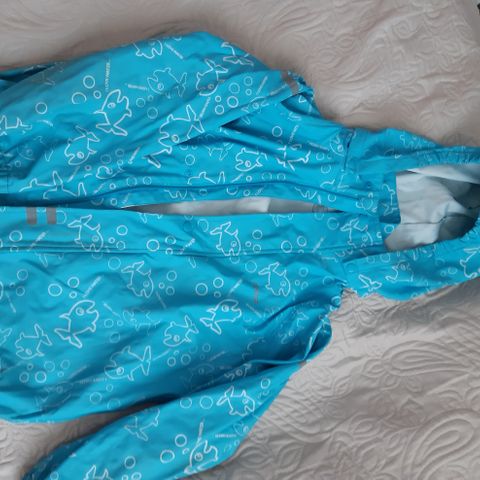 Reima Vatten pidempi mallinen sadetakki. Erittäin siistikuntoinen. Huppu irroitettava. Vetoketju ja napit. Koko 122.