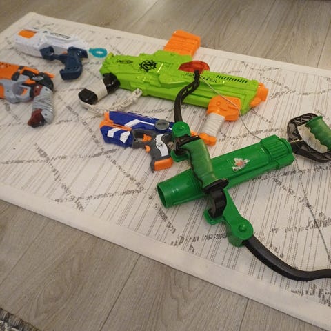 Tölkkimäiset Nerf aseisiin sopivat pehmeät palikat. Yhteensä 12 kpl (kuvasta puuttuu muutama).