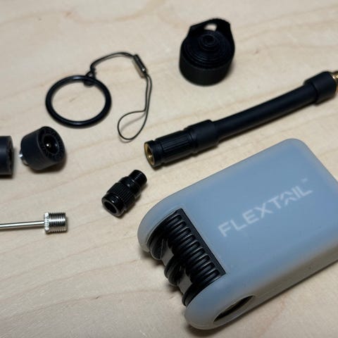 Pieni ja kevyt ilmapumppu, joka kulkee helposti mukana. Sopii pyöriin, potkureihin, sähkömopoihin ja uima-esineisiin. Maksimipaine ~ 8,3 bar / 120 psi, USB-C-lataus, mukana useita venttiililiittimiä. Digitaalinen näyttö näyttää paineen ja akun tilan. Käytetty mutta toimii moitteettomasti — loistava apu minne vaan, minne mennäkin.