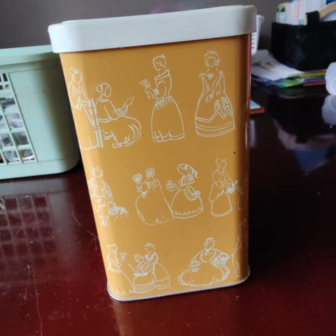 Kahvipurkki on päältä haalistunut. Tarkemmin asia selviää kuvista.