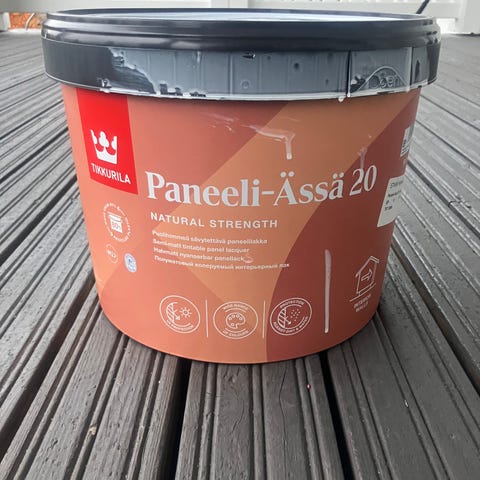 Vesiohenteinen väritön puolihimmeä paneelilakka. Avaamattomia 9L purkkeja 2kpl. Säilytetty lämpimässä varastossa. Hinta purkille.