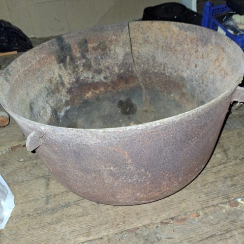 Myyn suuren, upean Porin valun valmistaman padan. Halkaisija noin 57 cm ja korkeus noin 31 cm. Tämä on ollut varastoituna 30 vuotta ja nyt pesin sen myyntiin. On ollut minulla aikanaan kukka käytössä. Ikäisekseen siis todella hyväkuntoinen ja kaunis pata. Noutona myyn.