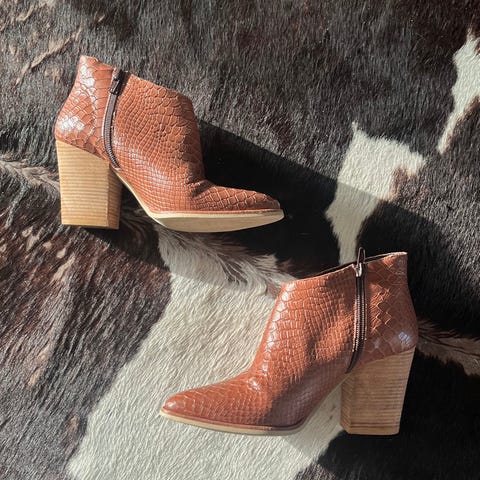 FRYE Regina Wedge Back Zip Leather Ankle Boots Women's Brown