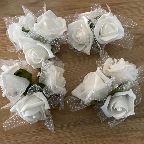 Käytetyt hääauton koristeet. Vaativat hieman tuunausta ennen käyttöä mutta ihan ok kunto. Käytön jälkeä on.