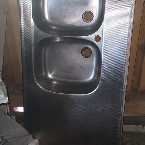 Keittiön välitilan levy alumiinireunoilla. Koko n. 250x35 cm. Toisessa päässä pistorasian reika. Voi pienentää pituutta