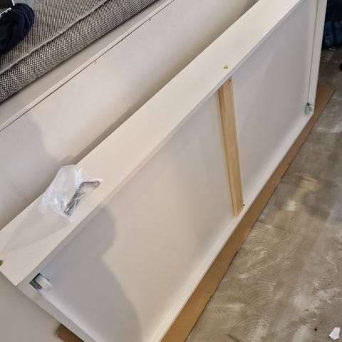 Unipuun sänky ja sängynaluslaatikosto. Laatikoston reunassa kulumaa ,joka ei näy sängyn alta.