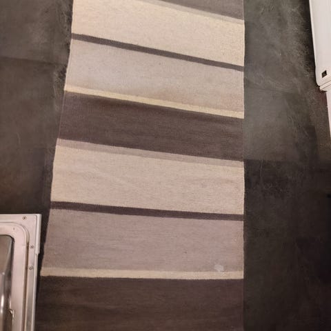 Paljon eri värisiä käytävän mattoja (osa itse tehty). Koot kuvissa (mitat ilman hapsuja) ja hinta 5€/kpl