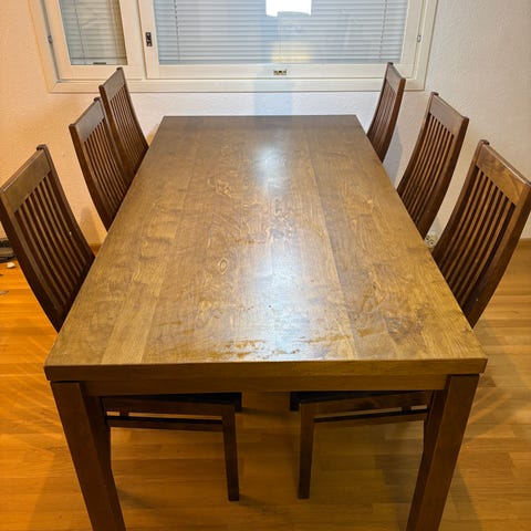 Myydään Pohjanmaan kalusteen 6 hengen ruokapöytä.
