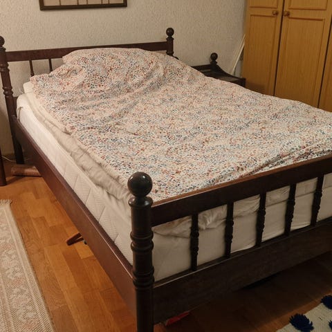Jyskistä ostetut puiset, mustat sängynjalat, 8kpl/20€.