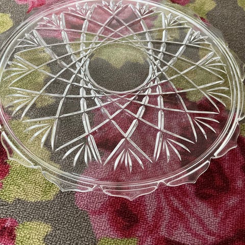 Erittäin hyväkuntoinen, kaunis ja painava lasinen tarjoilulautanen korkealla jalalla.