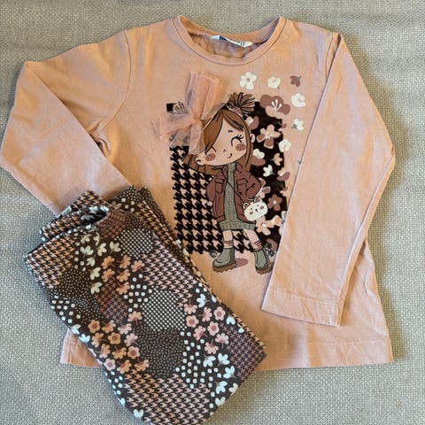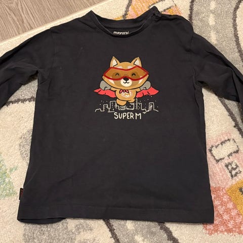 Pitkähihainen ohut paita, kokoa 98cm. Mayoral. Kuva-aiheena tiipii, joka avautuu.