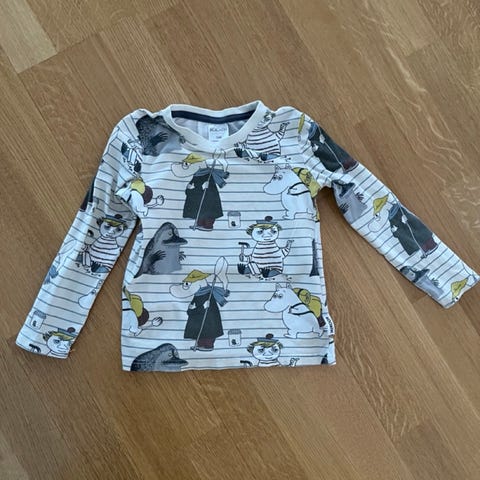 Muumi-paita ruskea pitkähihainen. Taskullinen. Koko 104cm