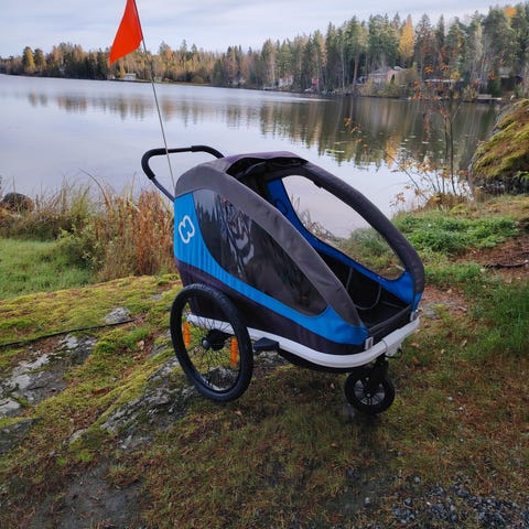 Kahden lapsen lastenkuljetuskärryt. Mukana etupyörä, joka mahdollistaa rattaiden työntämisen. Kokoontaitettavat. Hyvä pehmustus, isot ikkunat. Paino: 13 kg.Traveller on näppärä pyörän perään kiinnitettävä lastenkuljetuskärry, jota voi käyttää myös ilman polkupyörää. Kun vetoaisan tilalle asetetaan mukana oleva eturengas, kärryä voi työntää kuten tavallisia rattaita. Vaunuissa on runsaasti säilytystilaa, myös vetoaisa sopii vaunun alla olevaan säilytystilaan.Kohokohdat:- Tukeva runkokehikko- Lasten viisipistevaljaat- Mukana kärryjen näkyvyyttä lisäävä lippu- Helppo muuttaa pyöräilyvaunuista työnnettäviksi rattaiksi- Korkeussäädettävä työntöaisaTraveller on nopeasti noussut lastenperheiden suosikiksi hyvien turvallisuusominaisuuksiensa ja tilavuutensa ansiosta. Työntöaisan saa lukittua kahteen eri korkeuteen, mikä parantaa käyttömukavuutta myös vanhempien kannalta.Pyöräilyvaunuissa on hyvin tilaa kahdelle lapselle ja tavarakuormalle. Lapset istuvat erittäin hyvin mukaviksi pehmustetuissa istuimissa. He myös näkevät hyvin ulos isoista ikkunoista. Etuosan ikkunassa on hyönteisverkko. Koska etuosassa ei ole vetoketjukiinnitystä sen avaaminen ja sulkeminen on nopeaa ja vaivatonta.Yläosan kurkistusikkunasta näkee hetkessä nukkuvatko lapset ilman, että heitä tarvitsee häiritä. Vaunuissa on turvallisuutta parantavat parkkijarrut. Mukana sekä vetoaisa että eturengas pikakiinnikkeineen.Tuotetiedot:- Materiaali: Pehmustettu istuin, kevyesti vettä hylkivä, kestävä nylonkangas- Materiaalit, runko: Alumiinirunko, teräs - ja nylonosat- Kapasiteetti: 2 lasta- Istuin: Pehmustettu- Turvavyö: Viisipistevaljaat x 2- Painokapasiteetti, lapset: 22 kg- Maksimikuormitus: 47 kg- Maksimivauhti: 24 km / h- Ikäsuositus: Vähintään 6 kk- Lapsen enimmäispituus: 117 cm- Sertifioinnit: EN15918:2011+A2:2017 ja EN1888:2018- Paino: Noin 13 kg (vetoaisalla)