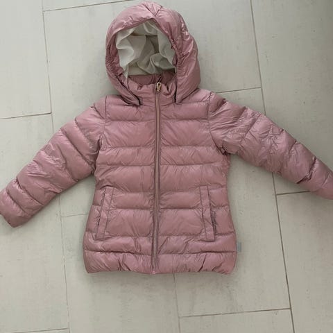 Lassien toppatakki kokoa 116cm, kukka-aiheinen. Pientä kulumaa jo.
