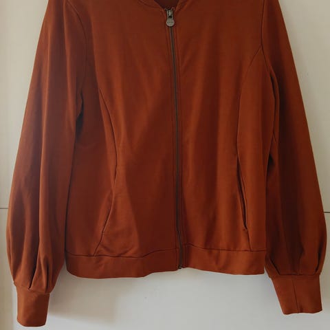 Noshin bombertakki ja housut. Molemmat oransseja, housujen väri on hieman haalistuneempi.