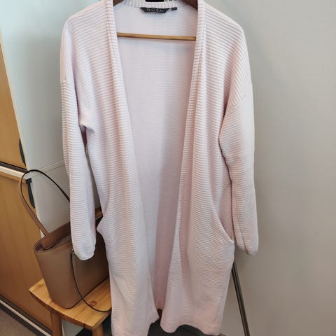 Takissa vetoketju ja taskut. Housuissa taskut ja takana valetaskut. Housujen vyötärön leveys 45 cm.