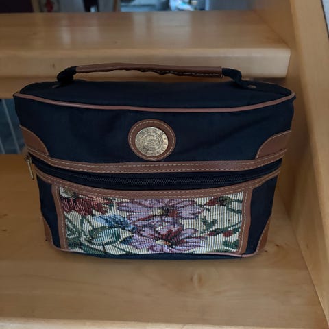 Vintage meikki laukku musta valkoinen