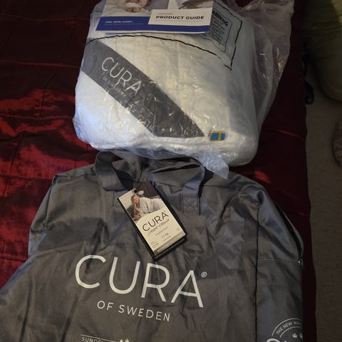 Harvakseltaan käytetty, hyvä kuntoinen Curan painopeitto. Ei tule itsellä enään käytettyä uniongelmien korjaannuttua.